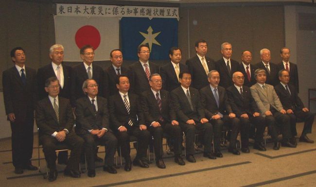 2012.01.14 東日本大震災に係る知事感謝状贈呈式 先の1月12日(木)、森田健作千葉県知事より、一般社団法人千葉県地質調査業協会へ感謝状が授与されました。大震災後の諸活動を評価していただいたものです。 ここに、森田知事はじめ、千葉県関係各位へ厚く御礼を申し上げます。 平成24年1月12日 会長 熱田和敏 前の記事へ 次の記事へ お知らせ一覧へ
