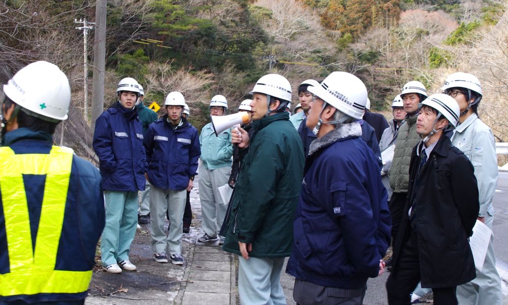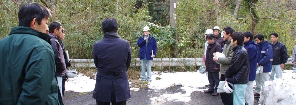 室内の講義だけではなく現場に出向いて研修することは少ないことから、残雪の中元気に現場を歩く若い技術者には好評でありました。参加者25名です。