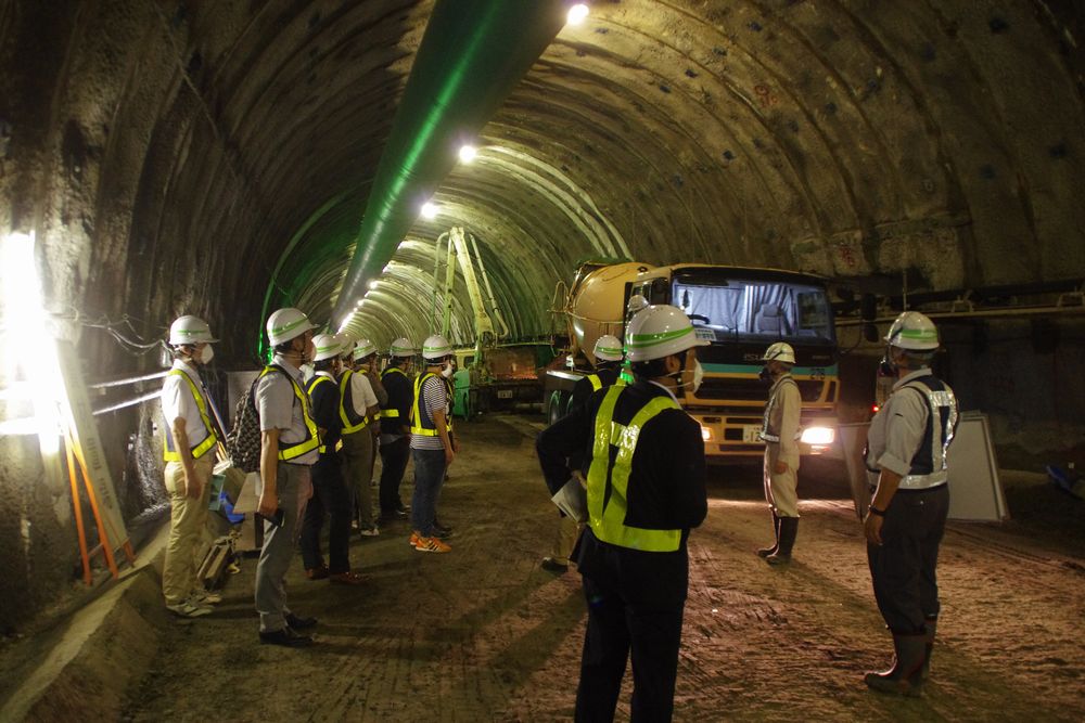 約1時間の現場見学を終え、次の見学地へと移動しこちらも富津市内の拡幅工事館山道・天羽トンネルの工事現場へ。こちらは東日本高速道路(株)関東支社木更津工事事務所のご担当が案内、解説をしていただきました。