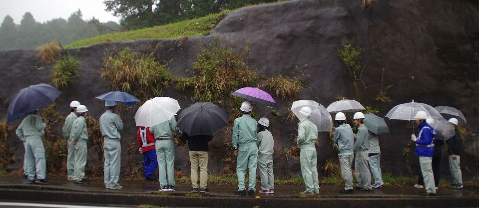 なお、雨天の中、熱心に現場研修をこなした受講者は道路環境課並びに県南地区を中心とした土木事務所の若手技術者24名の参加でありました。