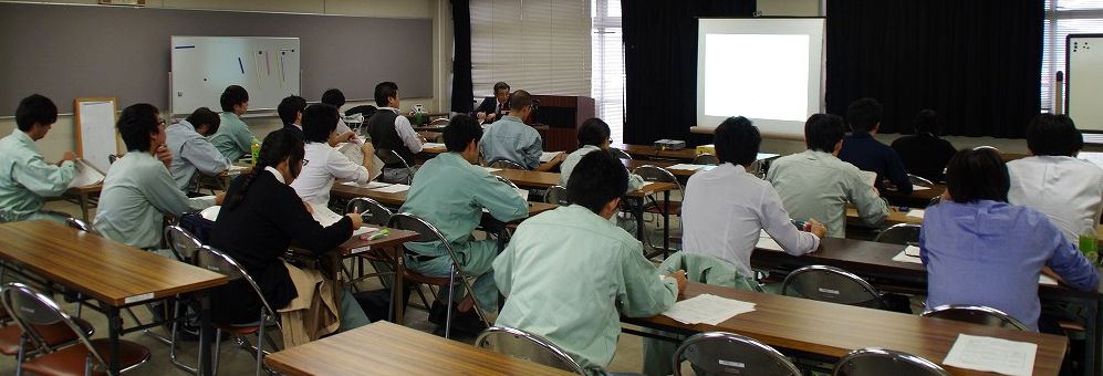 本年度は君津土木事務所管内の現場と言うことで君津合同庁舎4階の大会議室で午前中講義、その後、午後からバスで現場に移動して法面の実際的な観察方法、点検の技術を学びました。法面点検実習地は国道410号の君津市旅名地先及び君津市豊英地先です。